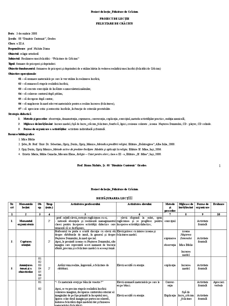 Proiect Didactic Felicitare De Craciun Doc