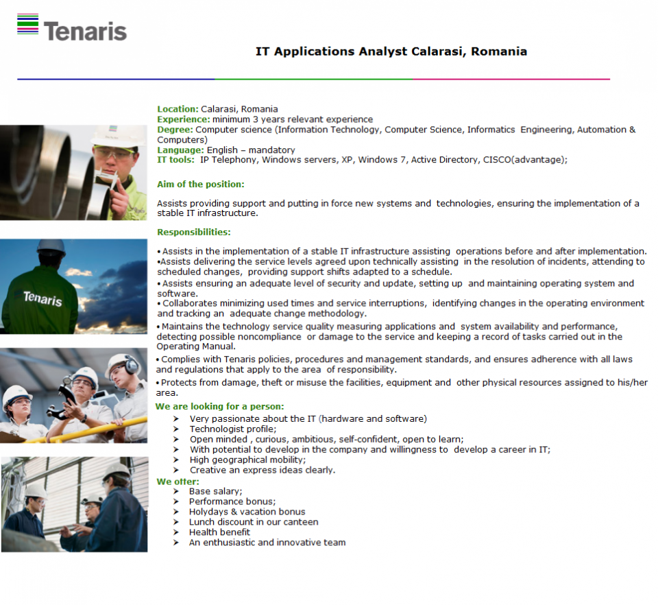 It Applications Analyst Calarasi Romania Tenarissilcotub